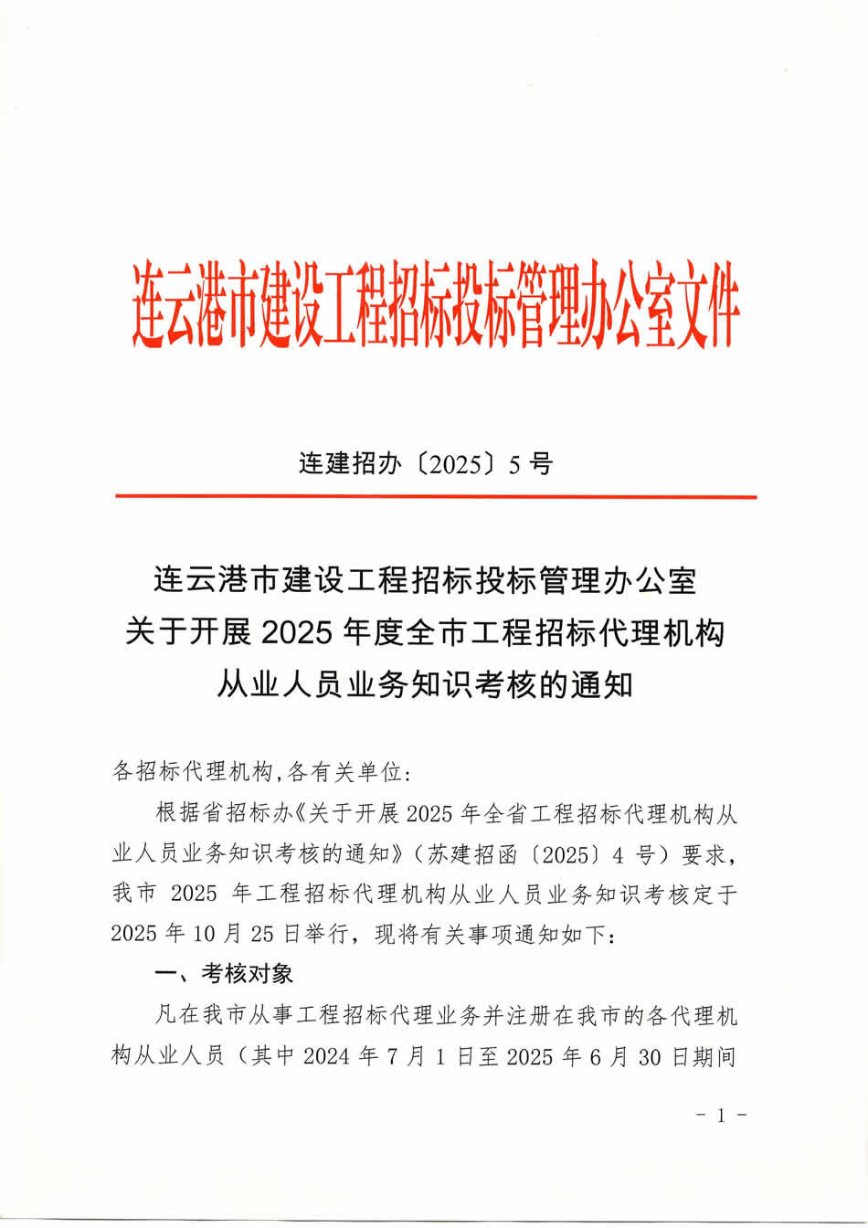 连建招办【2025】5号关于开展2025年度全市工程招标代理机构从业人员业务知识考核的通知.pdf